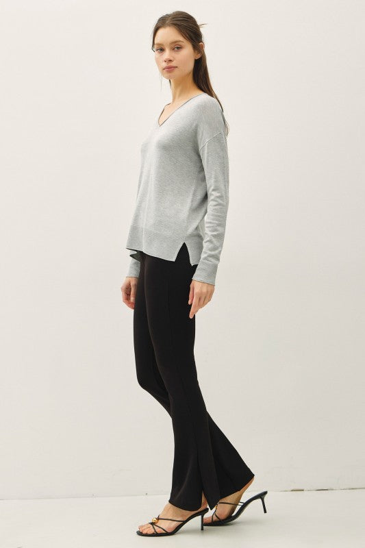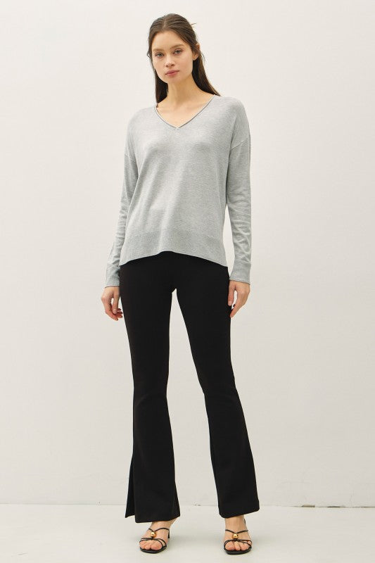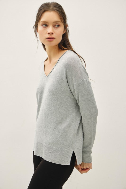 LIGHTWEIGHT PULLOVER V-NECK SWEATER (HTHR GRAY)