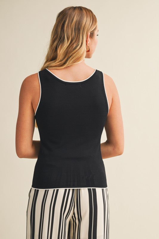 SWEATER TOP W/ CONTRAST PIPING
