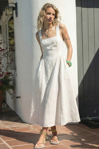 Light, airy, and effortlessly romantic, this flowing maxi dress cascades into a tiered ruffle skirt that moves with ease. The high waist, low smocked back, and subtle waist cutout create a flattering, relaxed silhouette perfect for sun-drenched days.